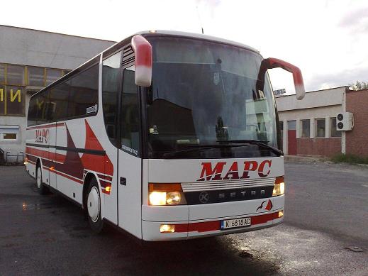 МАРС"ООД е транспортна фирма, утвърдена на българския и международния пазар. Фирмата е създадена и функционира от 1994г . Притежава лиценз за международен превоз на пътници с , отговаряйки на всички европейски изисквания за превоз на пътници."МАРС"ООД Извършва международен транспорт на пътници в страната и чужбина, приема оферти от цялата страна.Офертата на фирмата в следната:Цена на 1КМ.ПРОБЕГ - По Договаряне. |