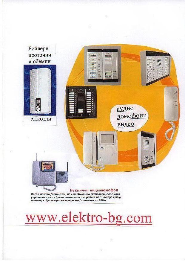 ДОМОФОНИ; аудио/видео 2мелодии, светещи зв.табла, ел.брави-код, стълб.осветление, подово отопление,котли,п/в замръзване, уреди, бойлер, ...