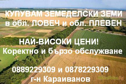 Изкупувам ЗЕМЕДЕЛСКИ ЗЕМИ в обл.ЛОВЕЧ-до 500лв./дка.