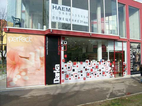 Ателие за външна реклама Артзона изработва облепване на витрини с фолио, плотерно рязане на фолио, брандиране с фолио, брандиране на ...